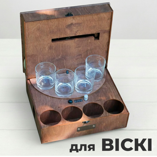 Наливатор для горілки – це компактний дерев'яний ящик, всередині якого розміщений пристрій для автоматичного розливу алкогольних напоїв. Він має просту та надійну конструкцію, користуватися якою зручно. Корпус виготовлений з екологічно чистого дерева, матеріал ретельно оброблений, гладкий, має приємний натуральний колір. У комплект входять скляні чарки. Регулювати об'єм рідини ви можете самостійно за допомогою спеціального регулятора та табло.